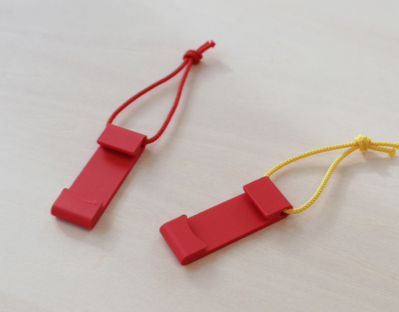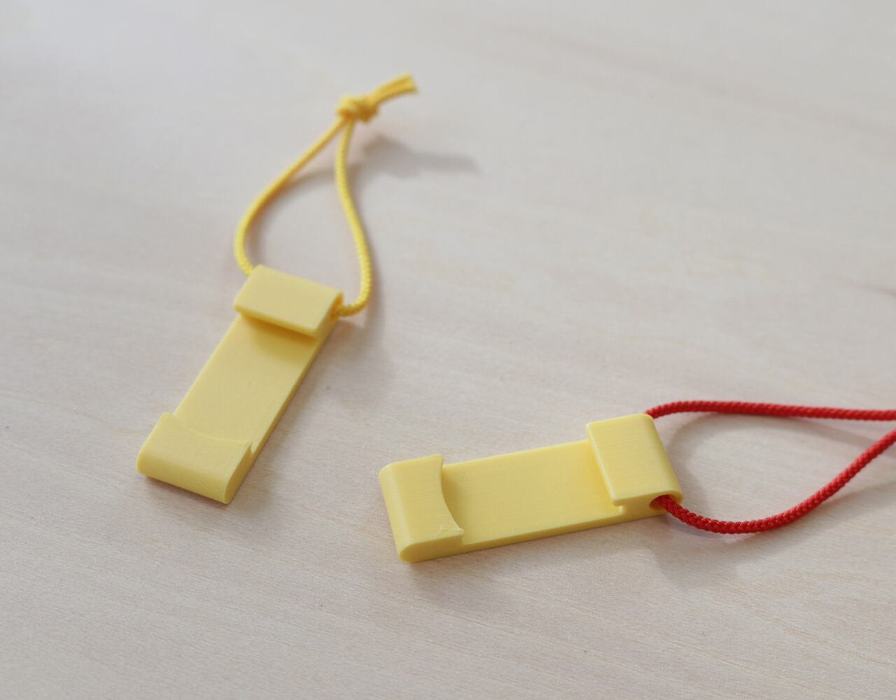 外す時は本体上部(紐側)を固定しながら、本体下部を100円側に反るように力をかけると外れます。